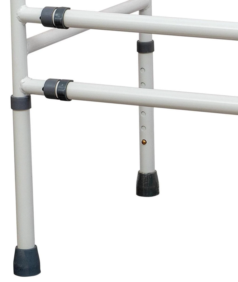 In hoogte verstelbaar toiletframe. Wit met grijze details. De breedte is geschikt voor vrijwel alle toiletten. Het frame is verpakt in een platte doos. Zeer gemakkelijk in elkaar te zetten.