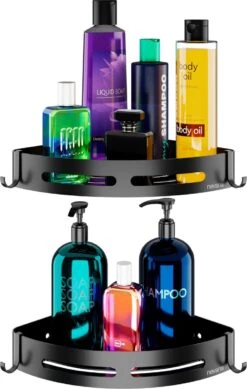 Doucherek Zonder Boren – Zwart – 2-Laags Doucherekje – Hangend Aan Douchewand