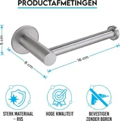 Sanics WC Rolhouder Zonder Boren – Toiletrolhouder Zelfklevend – Closetrolhouder Zilver/RVS
