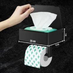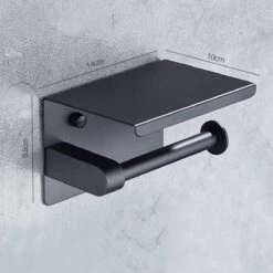 Toiletrolhouder Met Bakje – WC Rolhouder Zwart – Toiletrolhouder Met Extra Opbergruimte