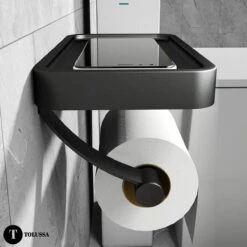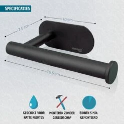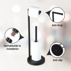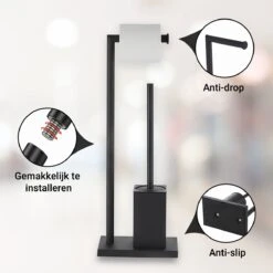 Toiletrolhouder Met Plankje – Zelfklevend Of Boren – WC Rolhouder – Incl. Handdoekhaakjes – Zwart