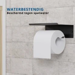 Westerhof Premium Wc Rolhouder Zwart Zonder Boren – Met Plankje – 3M Plakstrip En Schroef Set