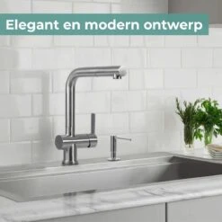 Mizzo Zeepdispenser 300ML – Zeeppompje – Inbouw Keukenblad – Gebogen Mond – RVS