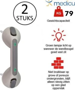 2 Stuks Supersterke Veiligheidsgrepen Voor Badkamer Douche, Bad, Toilet Met Sterke Zuignappen