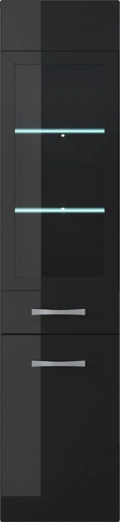 Badplaats Badkamerkast Rio 30 X 30 X 131 Cm – Zwart Hoogglans – Hangende Kolomkast Met 2 Deuren