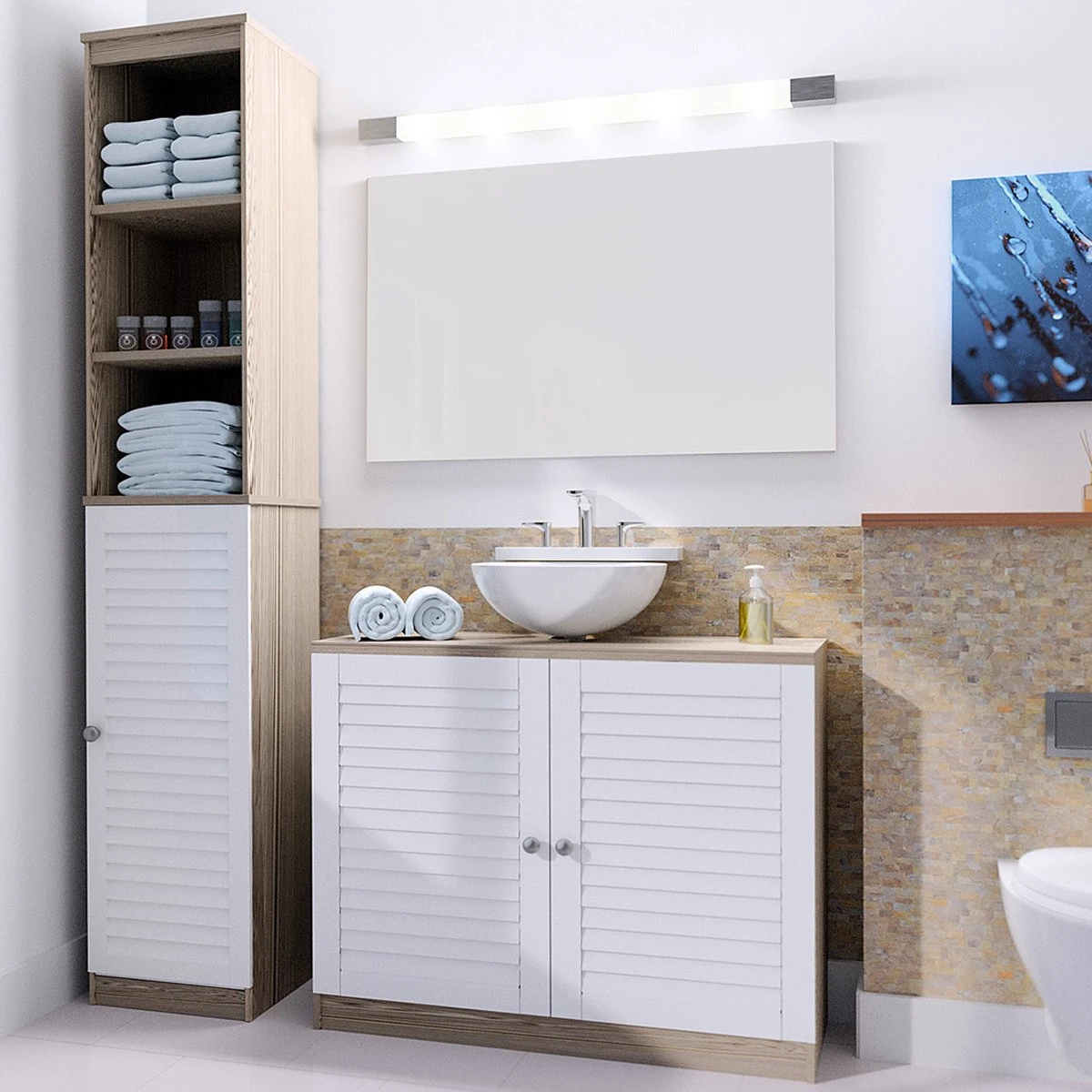 De ruime hoge badkamerkast en onderkast bieden ruimte voor jouw handdoeken, verzorgingsproducten en andere badkamerbenodigdheden. De kast is snel en eenvoudig in elkaar te zetten. Dankzij de Sipohn buisuitsparing past het badmeubel onder elke standaard wastafel in jouw badkamer.