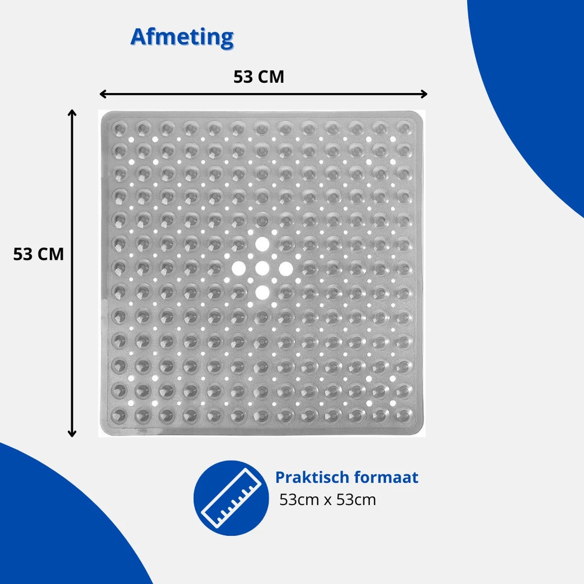 Veilig en hygiΓ«nisch douchen met de antislip douchemat. De douchemat is voorzien van een comfortabele structuur aan de bovenzijde welke zacht en prettig aanvoelt. De onderzijde is voorzien van sterke zuignappen voor een optimale grip in natte ruimtes.