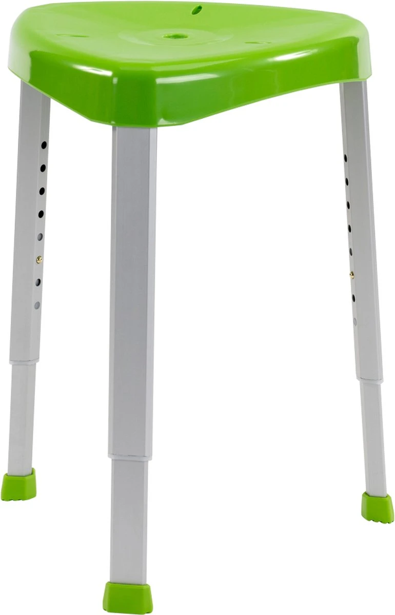 De grote anti-slip pootdoppen verzekeren u van een goede grip op de vloer. De zitting is voorzien van gaatjes zodat het water niet op de zitting blijft staan.