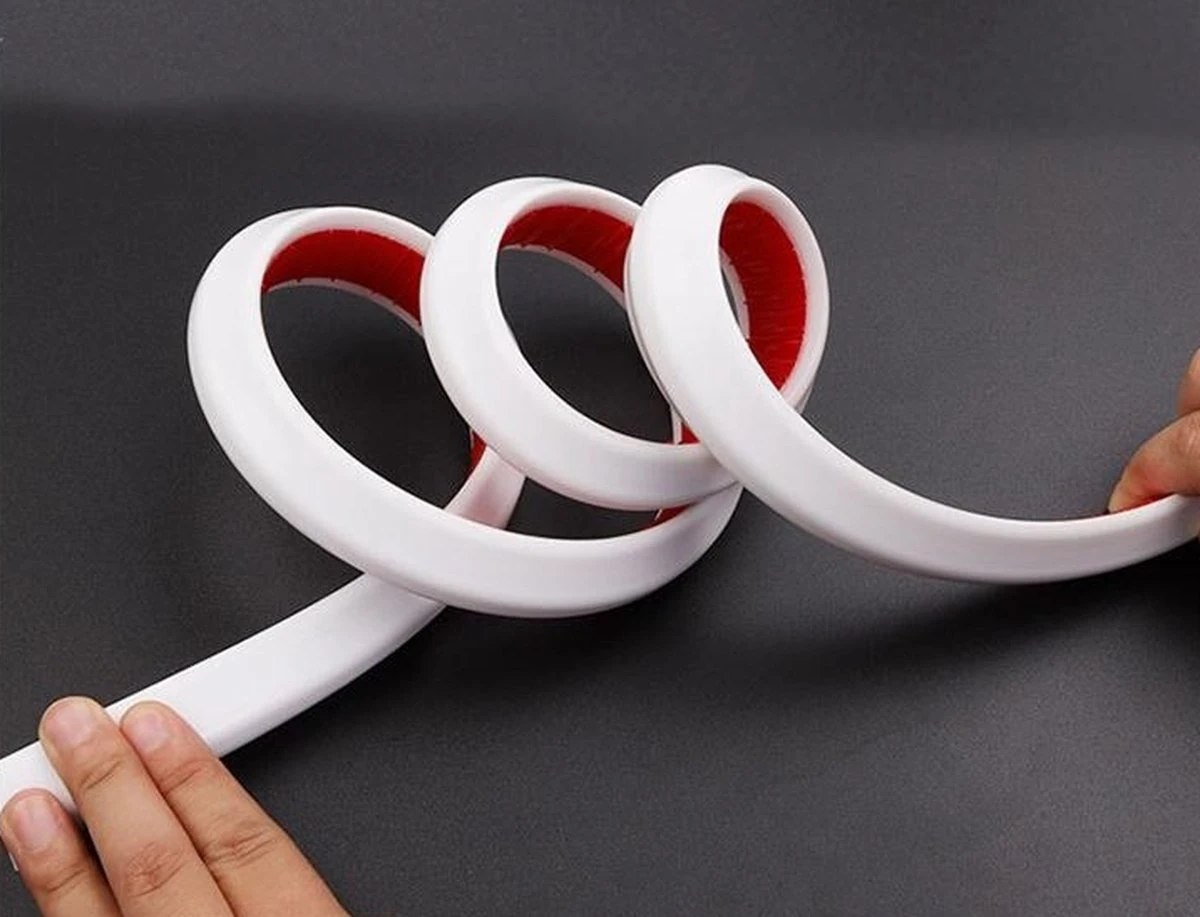 De Water Barrière Strip heeft een zelfklevende laag, waardoor je hem makkelijk kunt installeren. Met een schaar knip je hem in de juiste formaat en buig je hem makkelijk in de vorm die je nodig hebt.