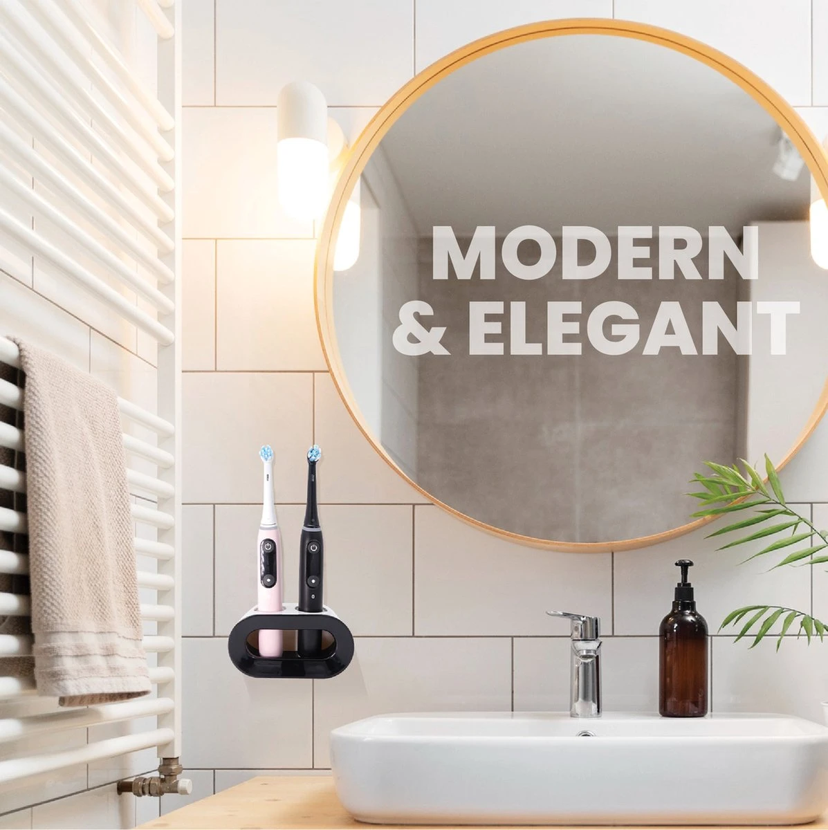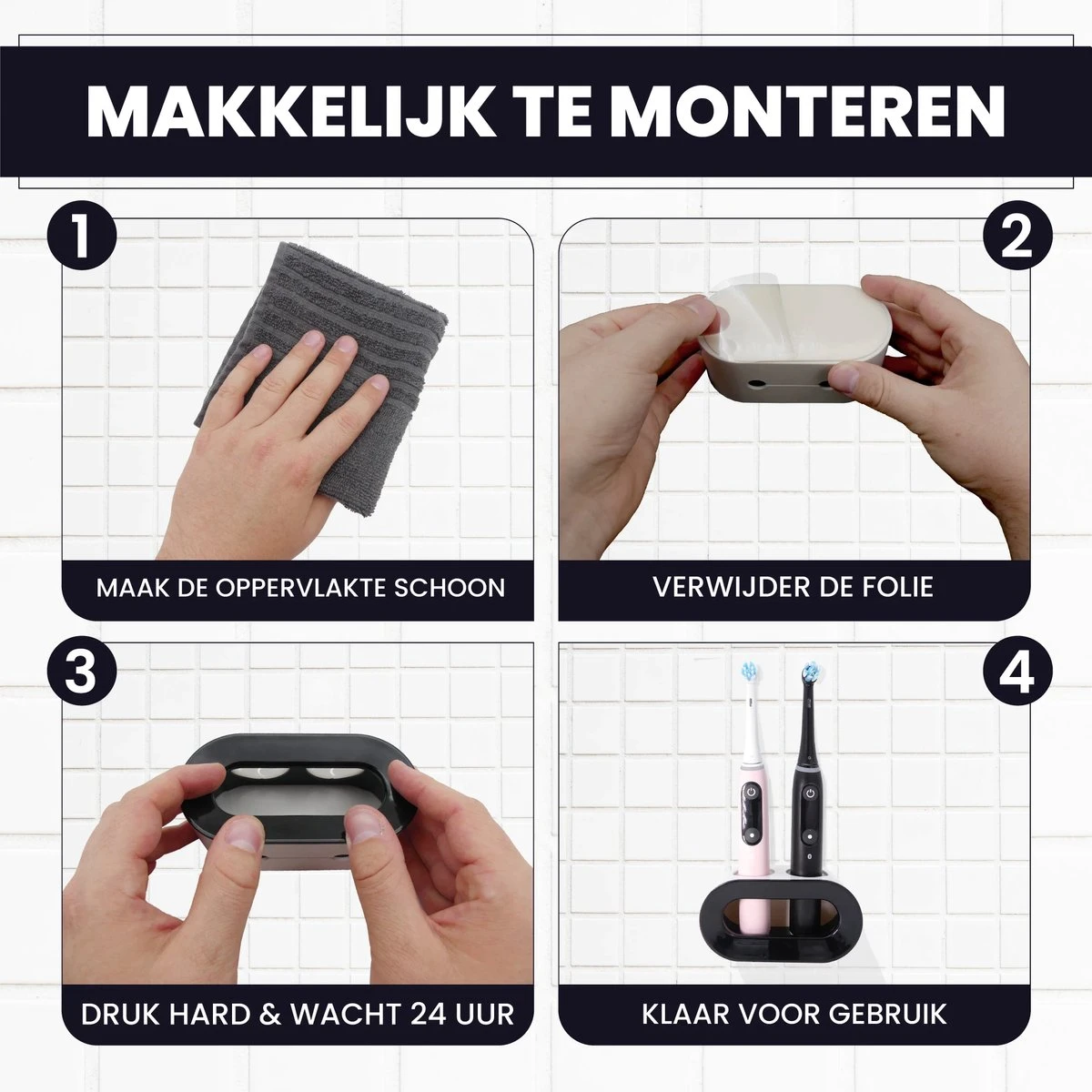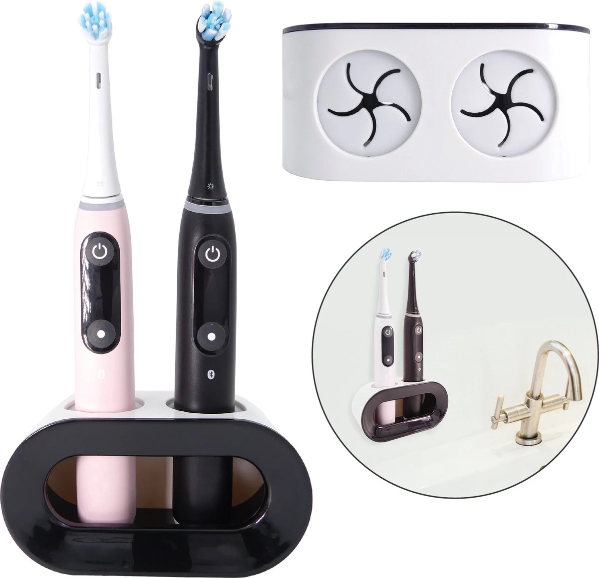 De tandenborstelhouder is geschikt voor twee elektrische tandenborstels. Door de siliconen ringen aan de bovenzijde zitten de tandenborstels goed vast. Zo kun je bijvoorbeeld je Oral-B tandenborstel makkelijk vast zetten. De siliconen ringen zorgen er ook voor dat er geen viezigheid achterblijft in de tandenborstelhouder.