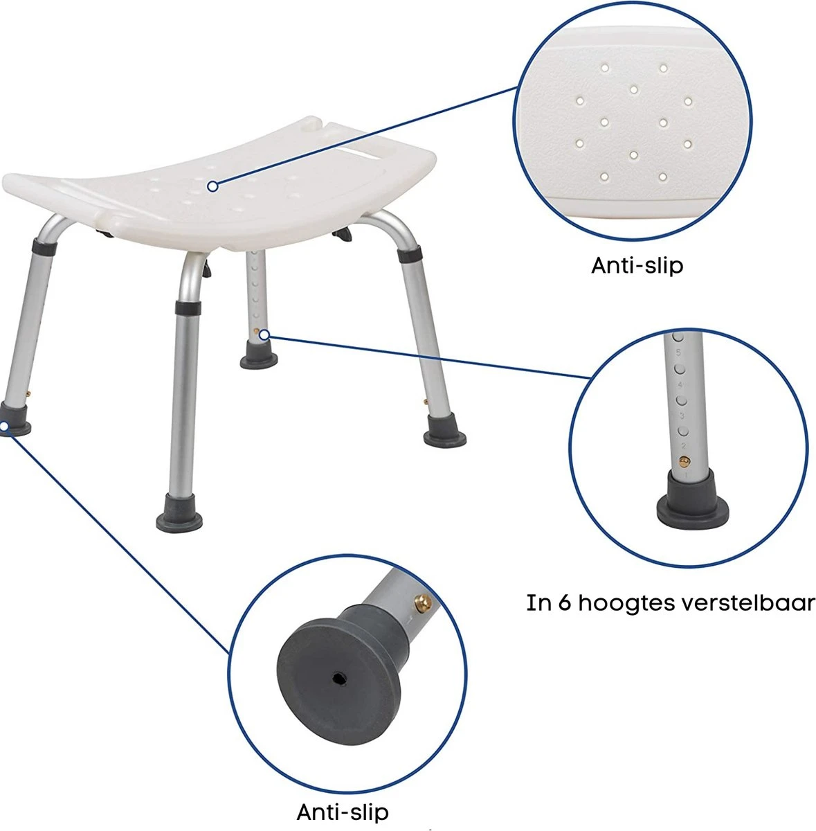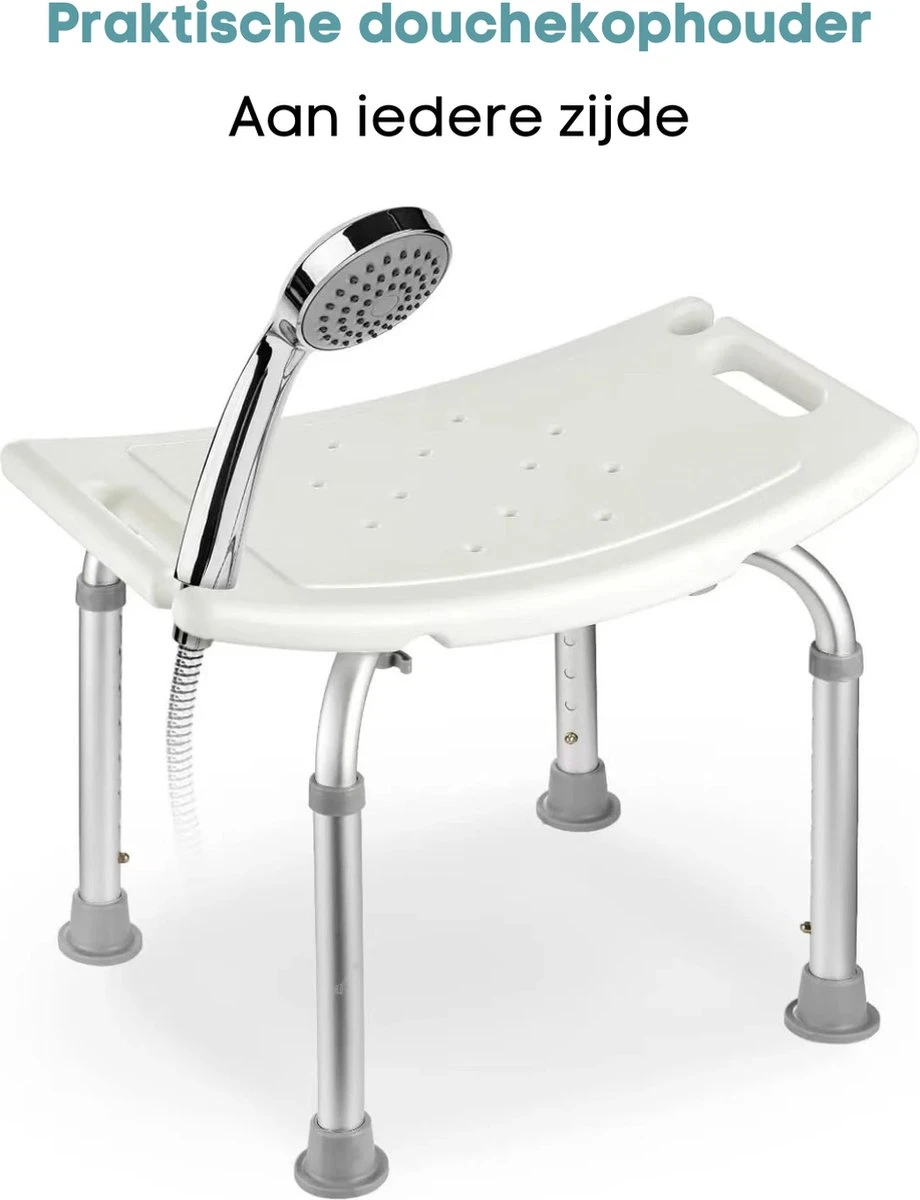 De Life&Home douchekruk, geleverd met wandbeugel lost alle ongemakken op die iemand kan hebben tijdens het douchen. De douchestoel is voorzien van 6 verschillende hoogtes met stevige antislip voetjes. Het douchekrukje biedt een comfortabel, ergonomisch zitvlak. Dat maakt de douche kruk voor mensen geschikt die bijvoorbeeld slecht te been zijn of net bevallen zijn. De douchestoel heeft aan beide kanten handgrepen voor extra veiligheid. Het zitvlak is voorzien van een antislip oppervlakte met drainage gaten voor het wegspoelen van het water. Het maximum gewicht die de douchekruk kan hebben bedraagt 130 kg.