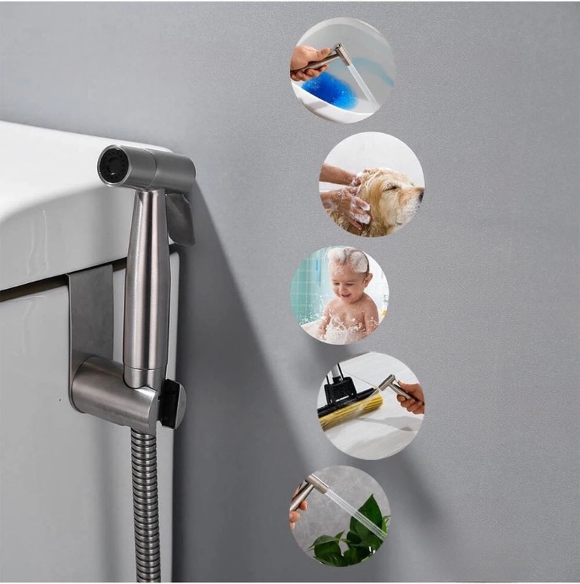 Deze bidet is voor veel dingen te gebruiken zoals, het wassen van je toilet, het wassen van je huisdier, het wassen van je lichaam, voor het wassen van een klein kind, om je vloer te dweilen of om je planten water te geven.