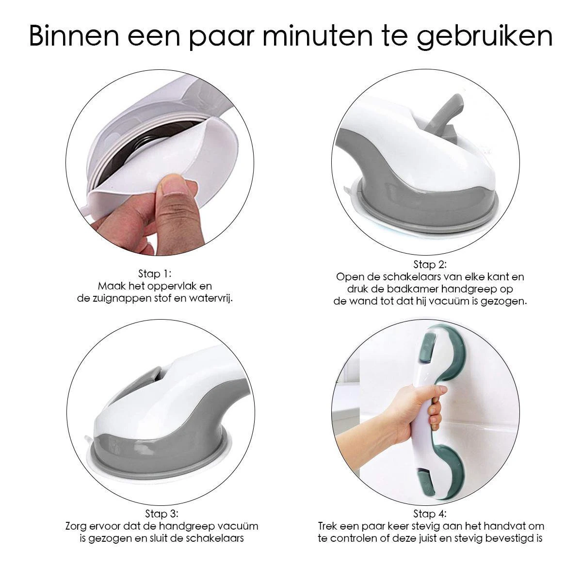 Deze handgreep is erg handig voor mensen die minder mobiel zijn en kan erg handig zijn bij badkamers of douches met gladde bodems. Door deze handgreep die met twee zuignappen stevig vast kan worden gemaakt op vlakke oppervlakten kan veilig het evenwicht behouden worden.