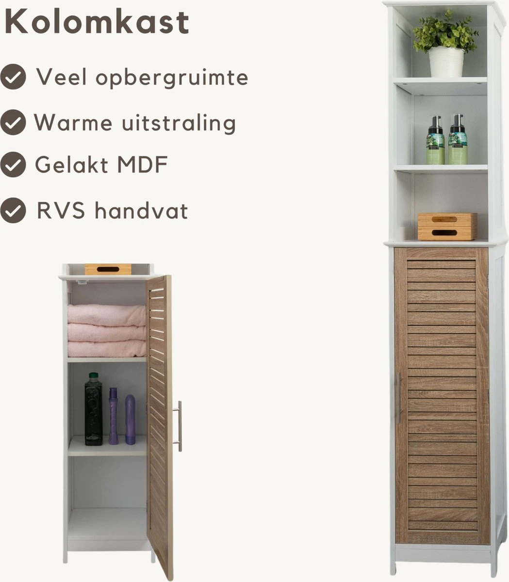 Deze heerlijk praktische hoge badkamerkast wordt ongetwijfeld een hoogtepunt in je badkamer. De tijdloze witte kolomkast past zowel bij traditionele als moderne inrichtingen. Dit badkamermeubel is gemaakt van hoogwaardig gelakt MDF, die wordt gekenmerkt door zijn bijzondere robuustheid en stabiliteit. Je kunt hem ook aan de muur bevestigen met de anti kantel beveiliging voor extra veiligheid. Met een hoogte van 173 cm maakt de kast dankbaar gebruik van de ruimte en bespaart hij ruimte op de vloer.