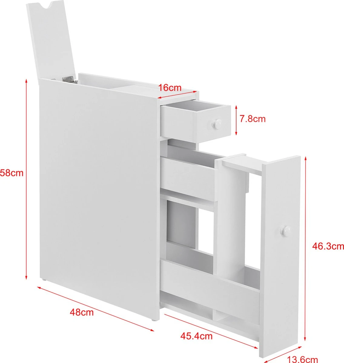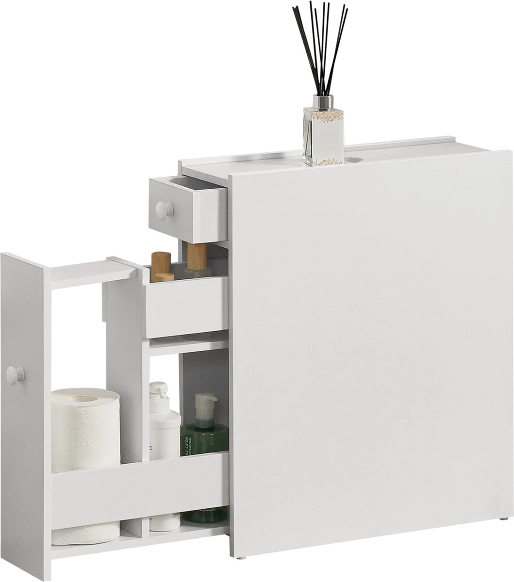 De smalle en ruimtebesparende multifunctionele kast biedt talloze mogelijkheden om alle spullen op te bergen. Ideaal voor bijvoorbeeld je badkamer, keuken of woonkamer.