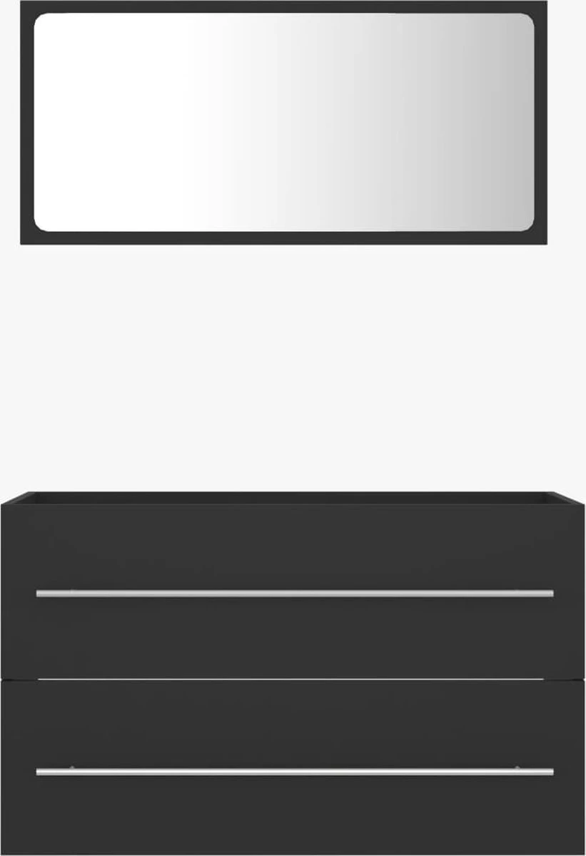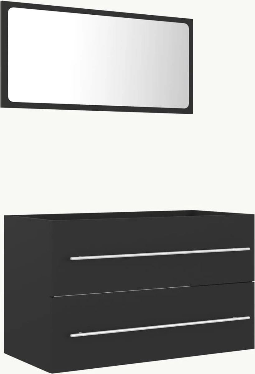 De meubelset, bestaande uit een spiegel en een kast, is gemaakt van duurzaam en stabiel spaanplaat. De chique kast is voorzien van 1 lade en biedt voldoende opbergruimte om spullen in je badkamer op te bergen. Het blad van de kast is ideaal voor het plaatsen van een wastafel. De spiegel geeft je interieur een prachtige uitstraling. Deze badkamerset is gemakkelijk schoon te maken met een vochtige doek.