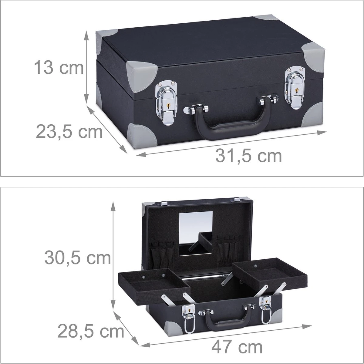 Afsluitbare visagie koffer met spiegel