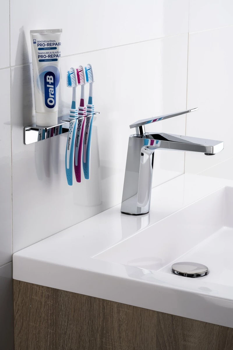 MULTI-FUNCTIONEEL PLATEAU – Naast het ophangen van tandenborstels kunt u bijvoorbeeld ook uw tandpasta of uw elektrische tandenborstel op de tandenborstelhouder neerzetten.