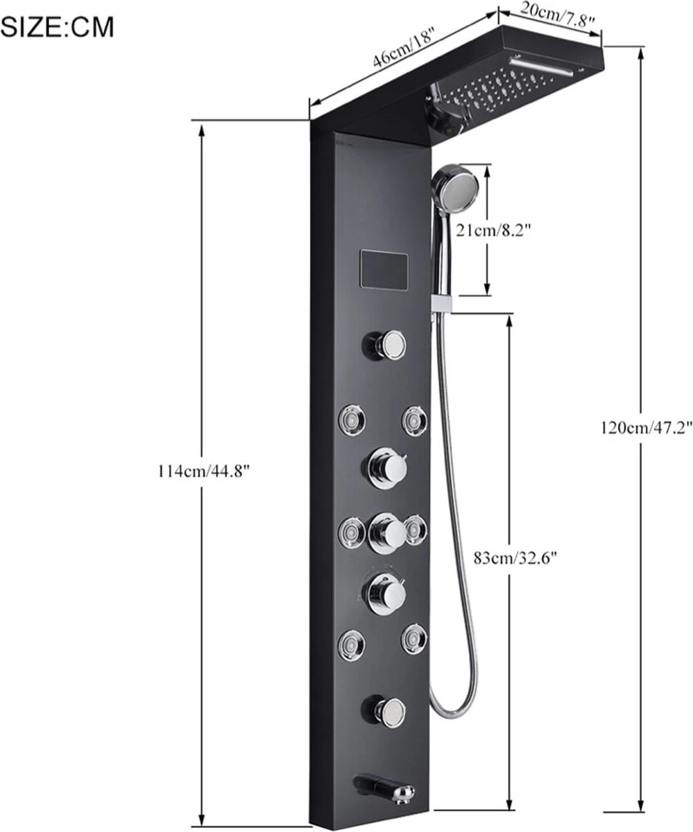 β Gemakkelijk te installeren – Het douchepaneel wordt geleverd inclusief alle benodigde installatie accessoires. Hij kan gemakkelijk en snel, stevig aan de muur worden gemonteerd.