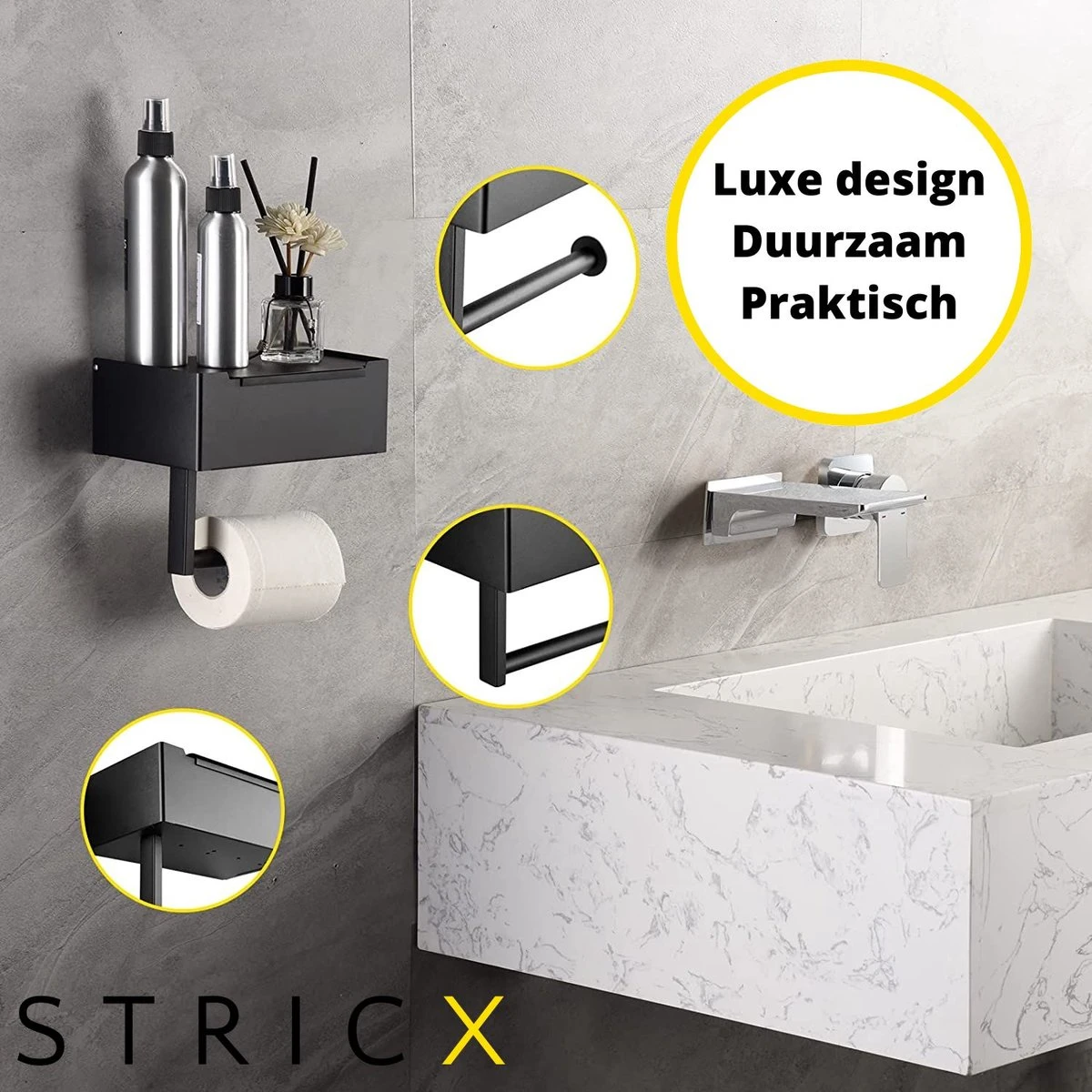 Het oog wil ook wat, bestel daarom de unieke WC rolhouder van STRICX! Het goed doordachte design van de toiletrolhouder met opbergvak is ideaal voor onder andere babydoekjes, natte wipes, hygiëne producten en nog veel meer! Het plankje kan dienen als telefoonhouder of voor decoratiestukken als een geurkaars. De luxe toilet rol houder met tissue box kan simpel bevestigd worden met de bijgeleverde zelfklevende plakstrip, zonder te boren dus! Jouw huis is een thuis met STRICX!