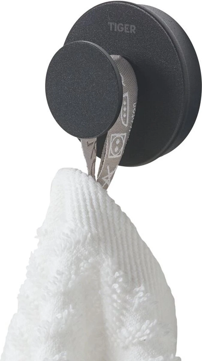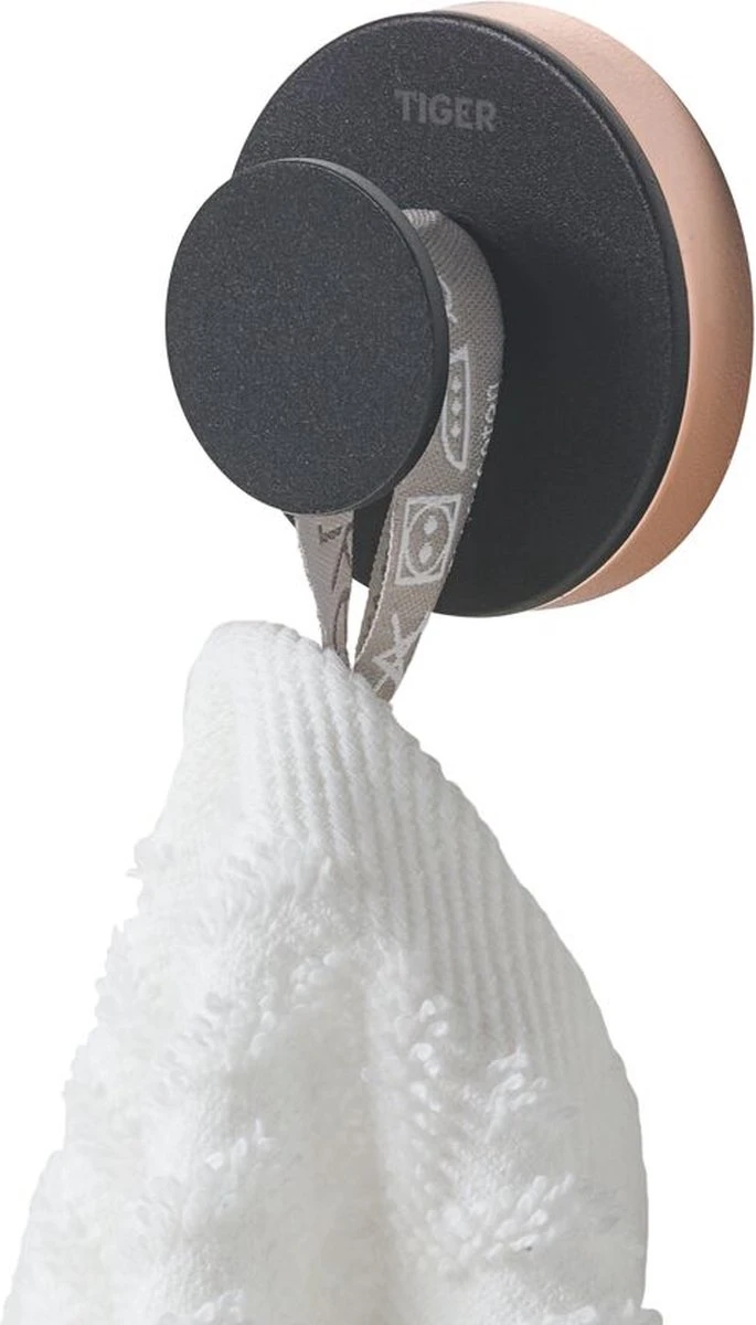 De haak groot uit de Urban serie van Tiger is uitgevoerd in de kleur mat zwart en wordt geleverd met twee decor ringen. De decor ringen, in de kleur koper en grijs, maken het mogelijk een subtiel kleuraccent toe te voegen. Het is ook mogelijk de haak zonder de decor ring te monteren waardoor het zeer eenvoudig is om het product aan de gewenste stijl aan te passen. Bij de montage van het artikel wordt gebruik gemaakt van een muurplaatje waardoor de bijgeleverde bevestigingsmaterialen uit het zicht verdwijnen. De Urban serie bevat tevens een groot aantal aanvullende accessoires voor de badkamer en toiletruimte. Alle in dezelfde stijl. De haak groot is tevens geschikt voor montage met TigerFix type 1, waarmee accessoires snel en eenvoudig op een gladde, harde ondergrond te bevestigen zijn door middel van een gepatenteerd lijmsysteem. Boren is niet noodzakelijk en de accessoires zijn eenvoudig te verwijderen zonder dat er resten op de ondergrond achterblijven. TigerFix is apart verkrijgbaar.