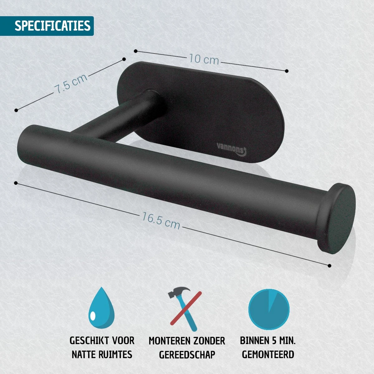 Let op: de toiletrolhouder is niet meer te verplaatsen zonder de tape te beschadigen. Weet dus zeker dat de houder op de juiste plaatst hangt voordat je deze vast maakt.