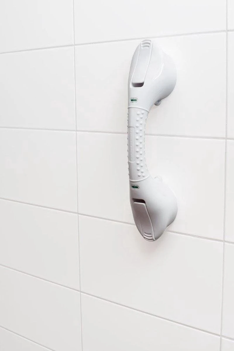 De Quick Mobile Rail is ontworpen om te ondersteunen bij een natuurlijke beweging, bijvoorbeeld als men in en uit de douche stapt. De Quick Mobile Rail is niet ontworpen om het hele lichaamsgewicht te dragen. De mobiele wandbeugel is in enkele seconden, zonder te boren of te schroeven, aan te brengen en te verwijderen. De twee krachtige zuignappen worden stevig op een gladde, niet poreuze en stevige oppervlakte gedrukt, de vacuümhendels worden naar beneden gedrukt en de Quick Mobile Rail zit vast. Als de indicator op groen staat is de beugel goed bevestigd. Indien de indicator half groen / half rood of geheel rood is, geeft dit aan dat de beugel niet goed vast zit. De beugel dient opnieuw te worden bevestigd.