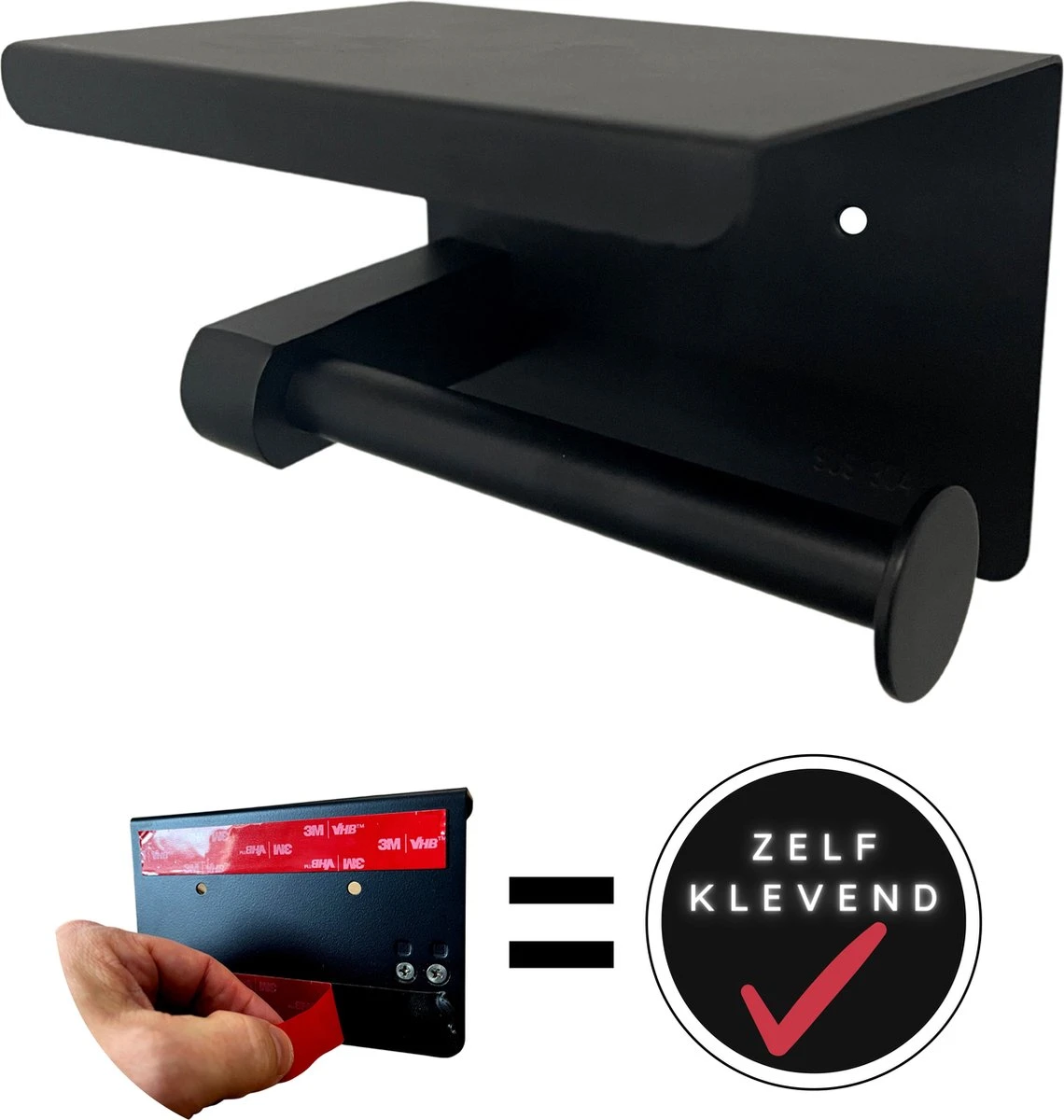 Met de stijlvolle zwarte Zelfklevende WC rolhouder met plankje van Fienosa heb je gegarandeerd een robuuste design toiletrolhouder in je badkamer en je toilet.