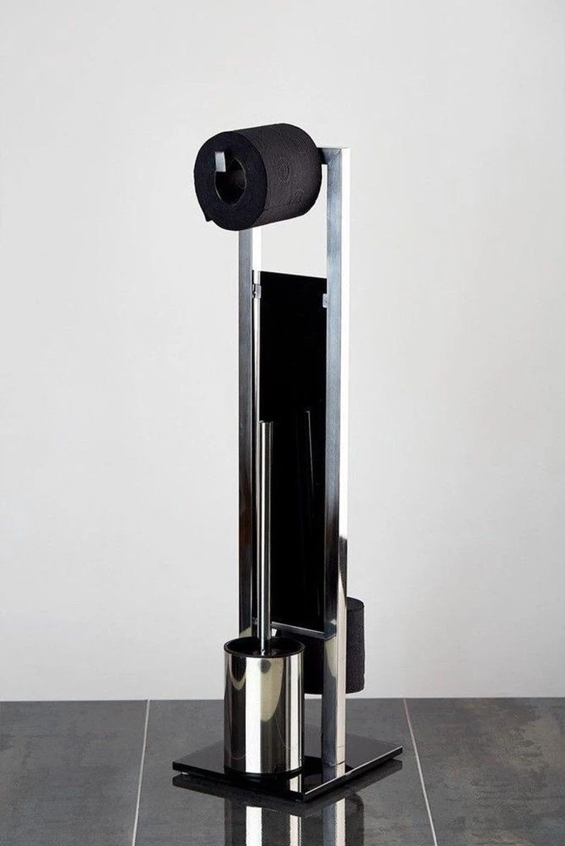 De hoogwaardige staande toiletbutler Rivalta is gemaakt van glanzend RVS gecombineerd met zwart, gehard glas.