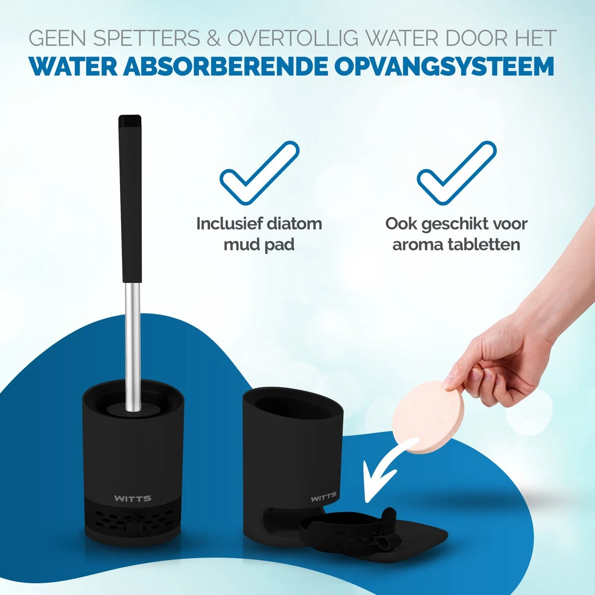 De hygiënische WITTS toiletborstel met houder is een aanwinst voor elk toilet. De innovatieve borstel maakt het reinigen super gemakkelijk en zorgt voor een ultiem gebruiksgemak en optimale hygiëne. Het stijlvolle design past in elk interieur en de houder kan op de grond geplaatst worden of eenvoudig worden opgehangen met een sterke plakstrip. Daarnaast is de houder voorzien van een ventilatie & water-absorberend opvangsysteem voor optimale hygiëne. Dankzij het ergonomische design maak jij het toilet in een handomdraai weer schoon en fris.