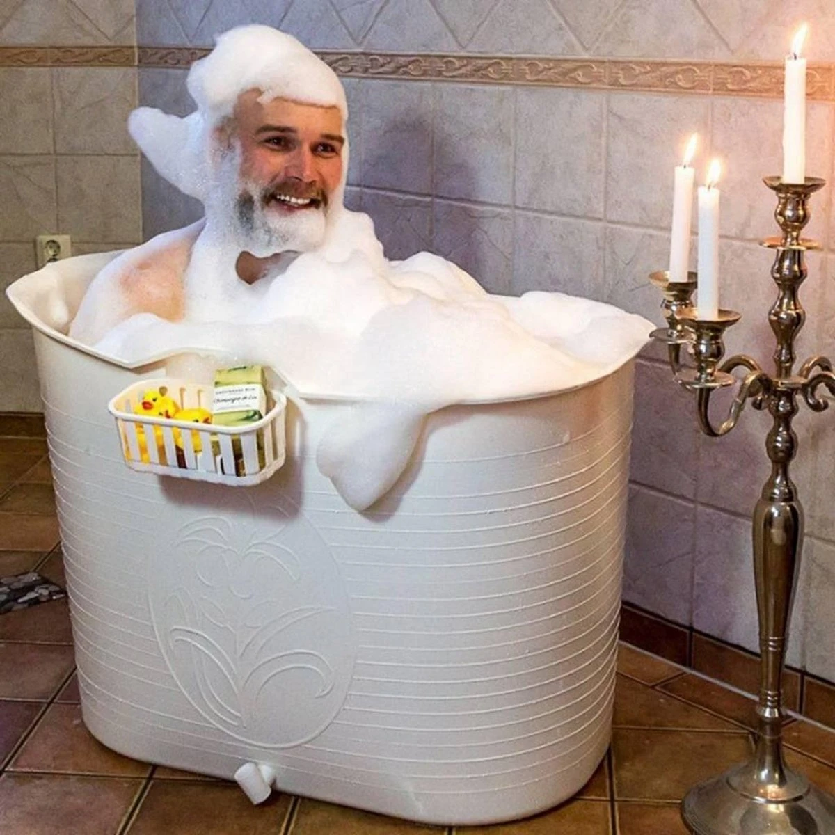 Tot nu bestonden dergelijke baden alleen nog maar voor kinderen, maar de Bath Bucket is groot genoeg voor een volwassen man. Natuurlijk kun je het bad ook gewoon gebruiken voor de kids.